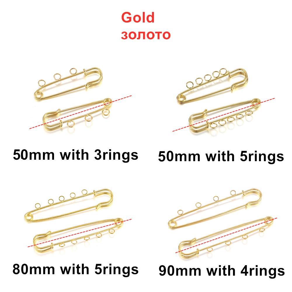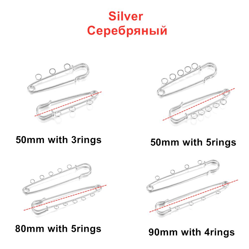 10 шт./лот, булавки, брошь, пустая основа, брошь, булавки 50/80/90 мм, булавки 3/5 колец, ювелирная булавка для изготовления ювелирных изделий, аксессуары