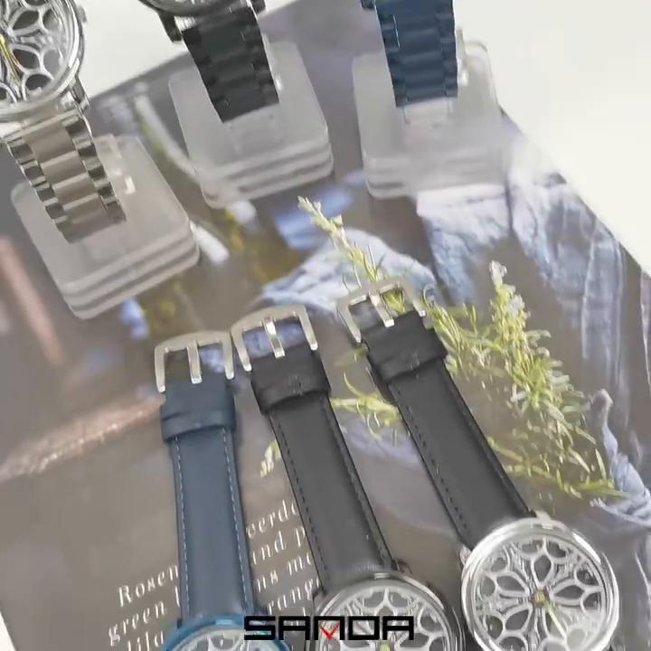 SANDA Новые кварцевые часы со стальным ремешком, мужские полые вращающиеся мужские простые индивидуальные часы