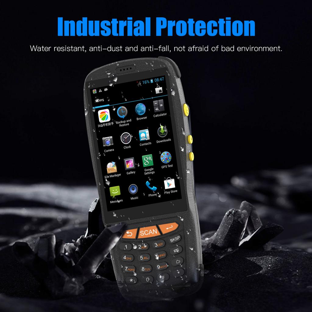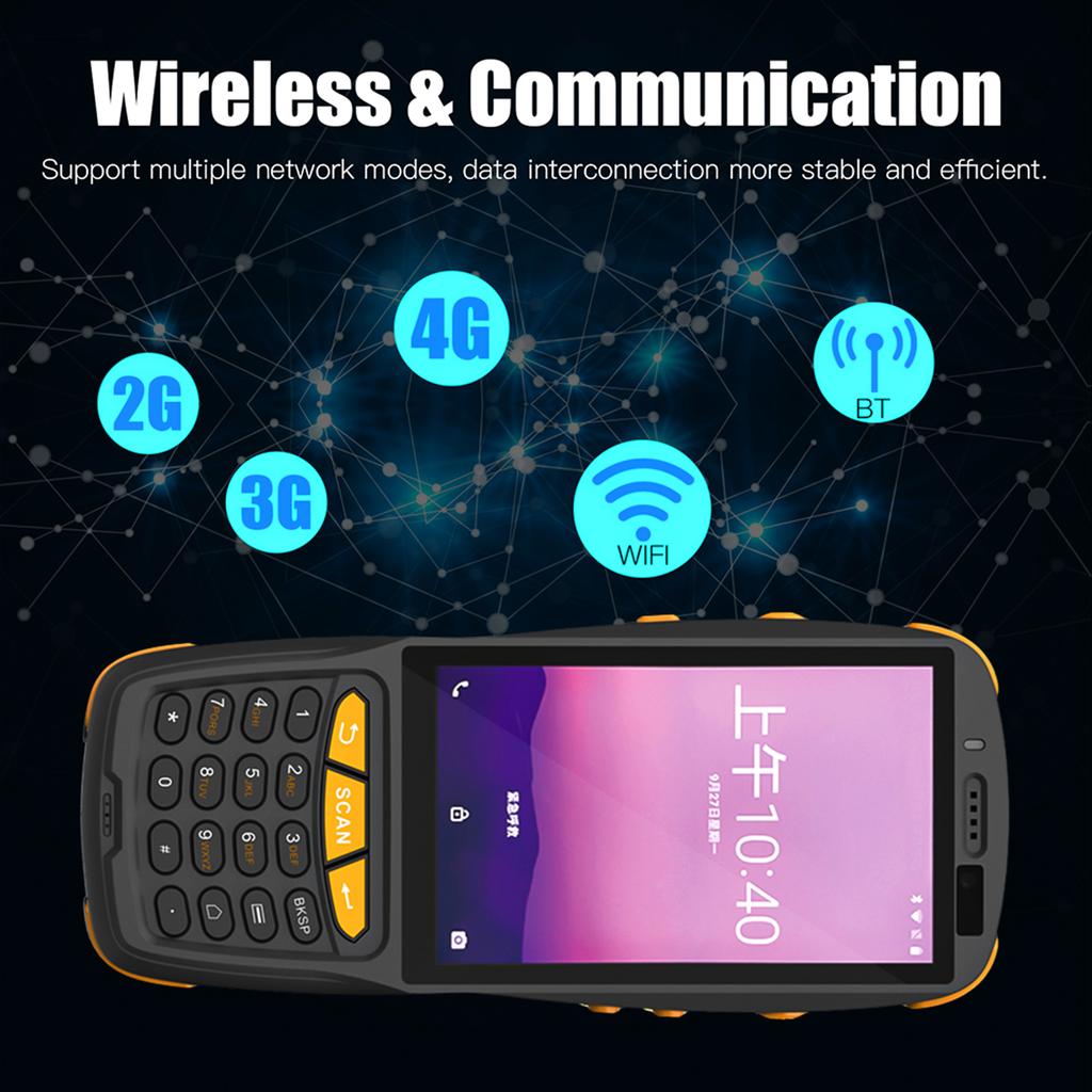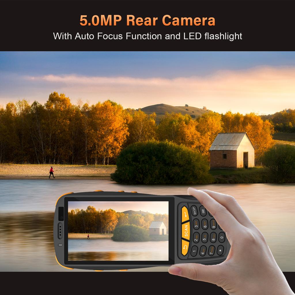 Эргономичный дизайнОборудование с 4-дюймовым цветным экраном и полностью цифровой клавиатурой, реализовать хороший опыт работы с большим экраном и одной рукой. Новый эргономичный угол сканирования может эффективно уменьшить движение запястья и усталость. 5 миллионов задней камеры с функцией автофокусировки, быстро идентифицируют код