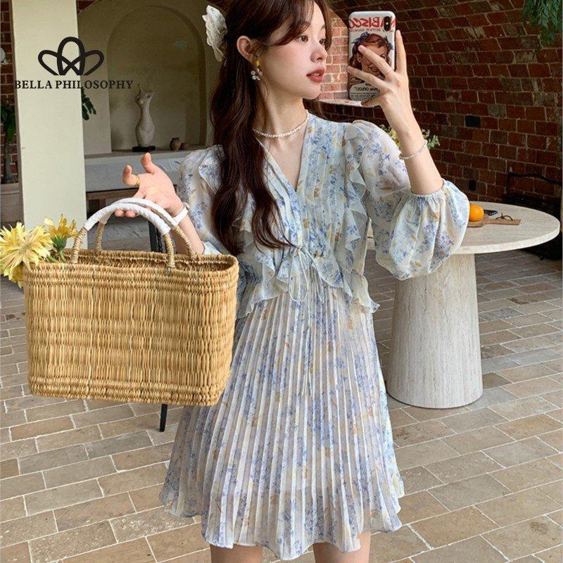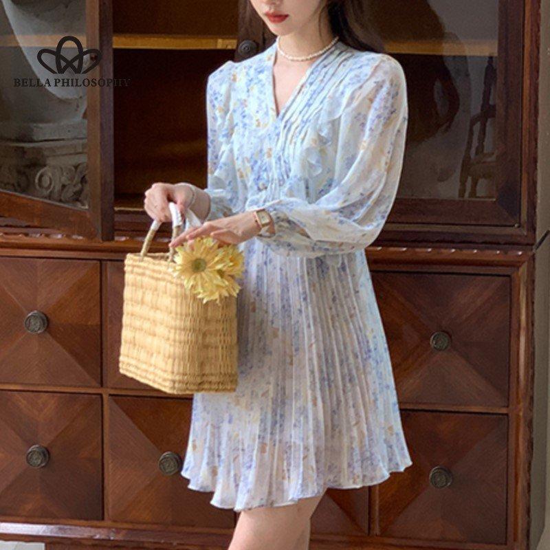 Французское плиссированное платье с v-образным вырезом и цветочным принтом, женское плиссированное модное повседневное платье ранней весной