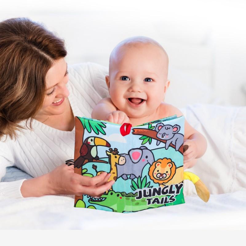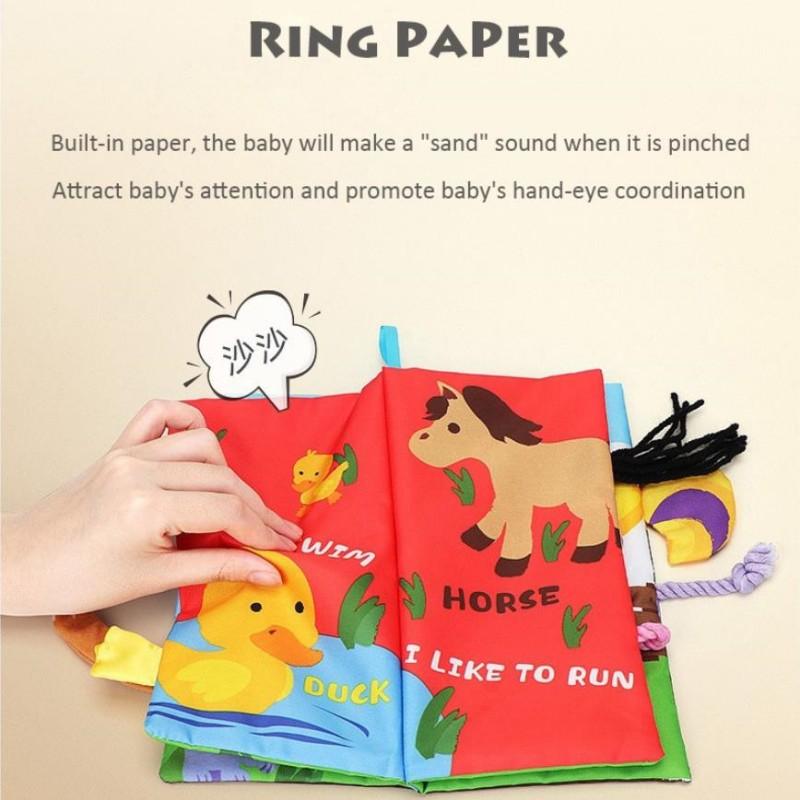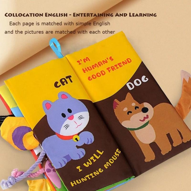 Креативная книга из ткани с хвостом животного для новорожденных, игрушка для детей 0-3 лет, игрушки для раннего обучения, 6 страниц и 12 сторон/4 страницы и 8 сторон, мягкая книга
