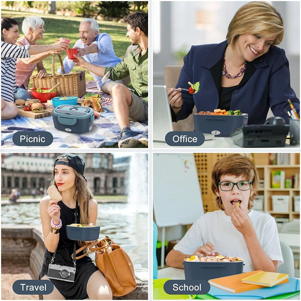 2 IN 1 Car & Home Use --- Электрический отопительный ланч-бокс содержит две разные вилки: один для работы/дома (110V), один для легковых/грузовых автомобилей (12В/24В). Люди, которые в дороге на обед или без доступа к микроволновой печи, такие как водитель грузовика / Uber / офисный работник, могут наслаждаться горячей домашней едой в машине / офисе.