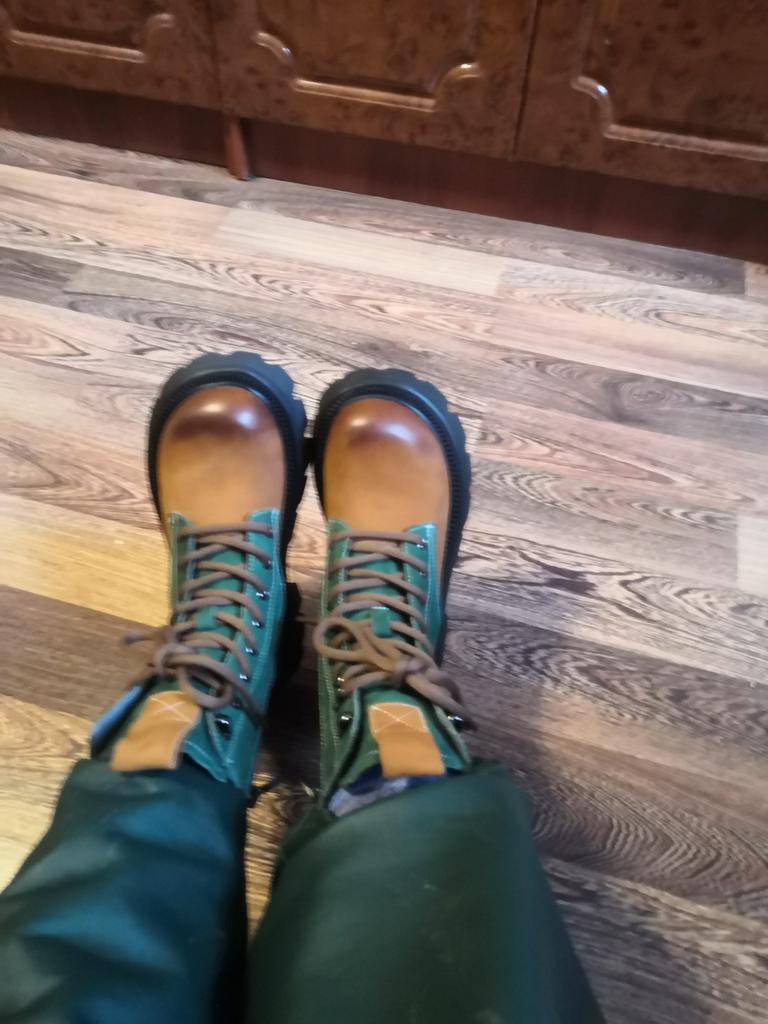 Оболденные ботинки! Заказала специально к зеленым брюкам и юбке из кожи. Легкие, удобные, натуральные с отличной прочной подошвой. На нашу Петербургскую зиму просто СУПЕР. Спасибо джумику за скорость и подарочек (розовые носки тепленькие). Процветания и успехов. ОДНОЗНАЧНО РЕКОМЕНДУЮ! на свой 36,заказала 37 на тёплый носок!