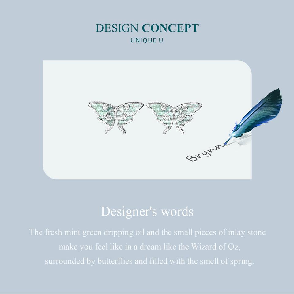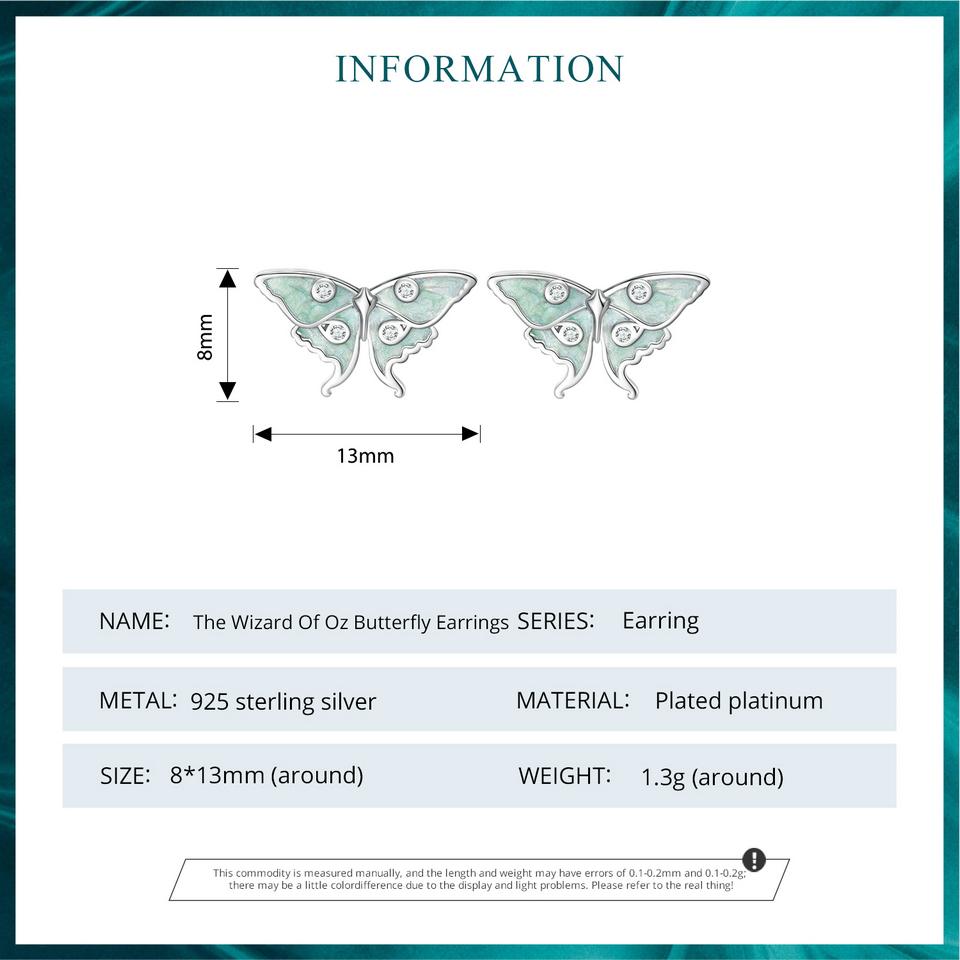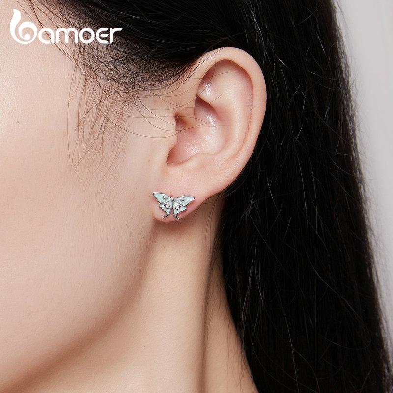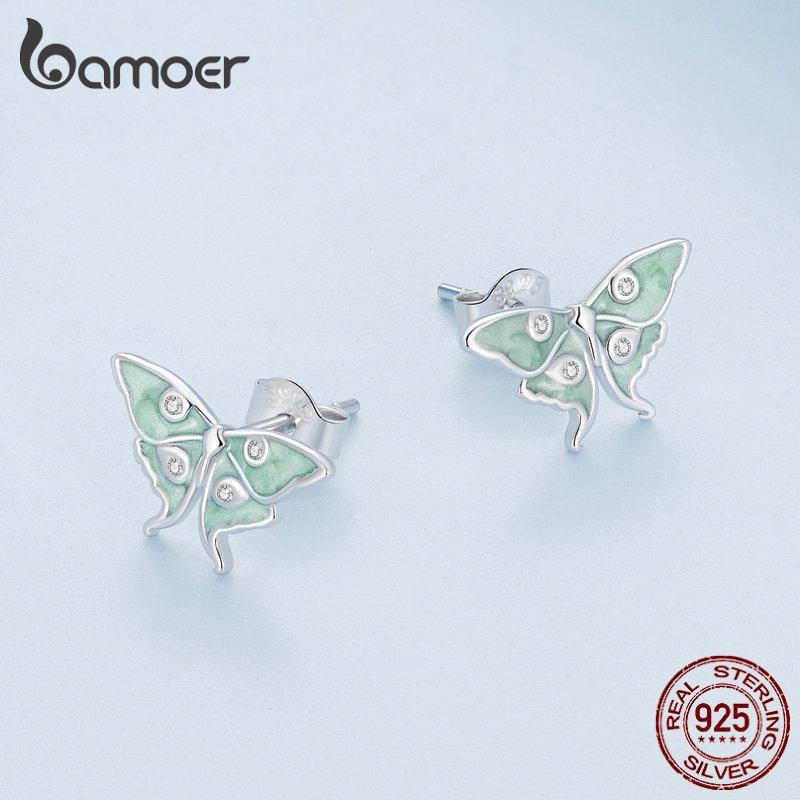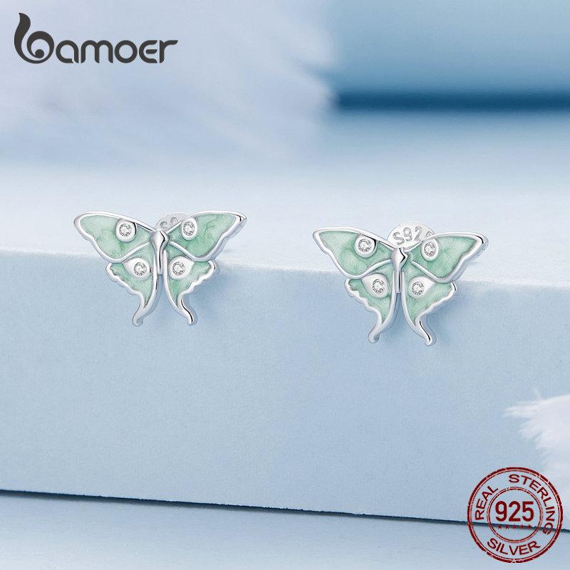 BAMOER стерлингового серебра 925 пробы, серьги-гвоздики с бабочкой «Волшебник страны Оз», мятно-зеленая эмаль, серьги с насекомыми для женщин, подарок на день рождения
