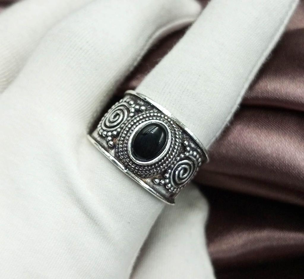 Черный драгоценный камень оникс стерлингового серебра 925 пробы Boho США SZ 9 кольцо ювелирные изделия NCR-R450