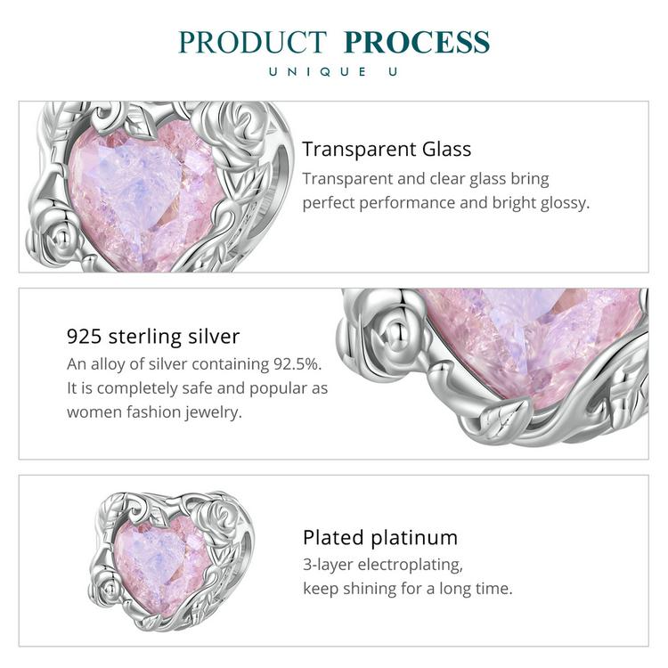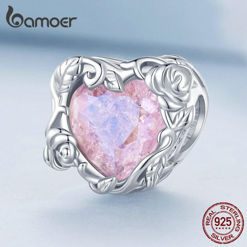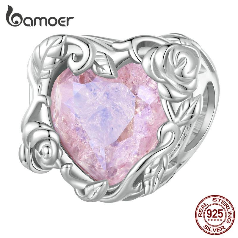 BAMOER Стерлингового Серебра 925 пробы Спиральный Кристалл Роза Подвески Бусина для Женщин Оригинальный Серебряный Браслет Изящные Ювелирные Изделия