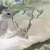 Кулон с хрусталем и опалом, ожерелье из жидкого металла для женщин, цепочка на ключицы, геометрическое нерегулярное винтажное колье Y2K, ювелирные аксессуары