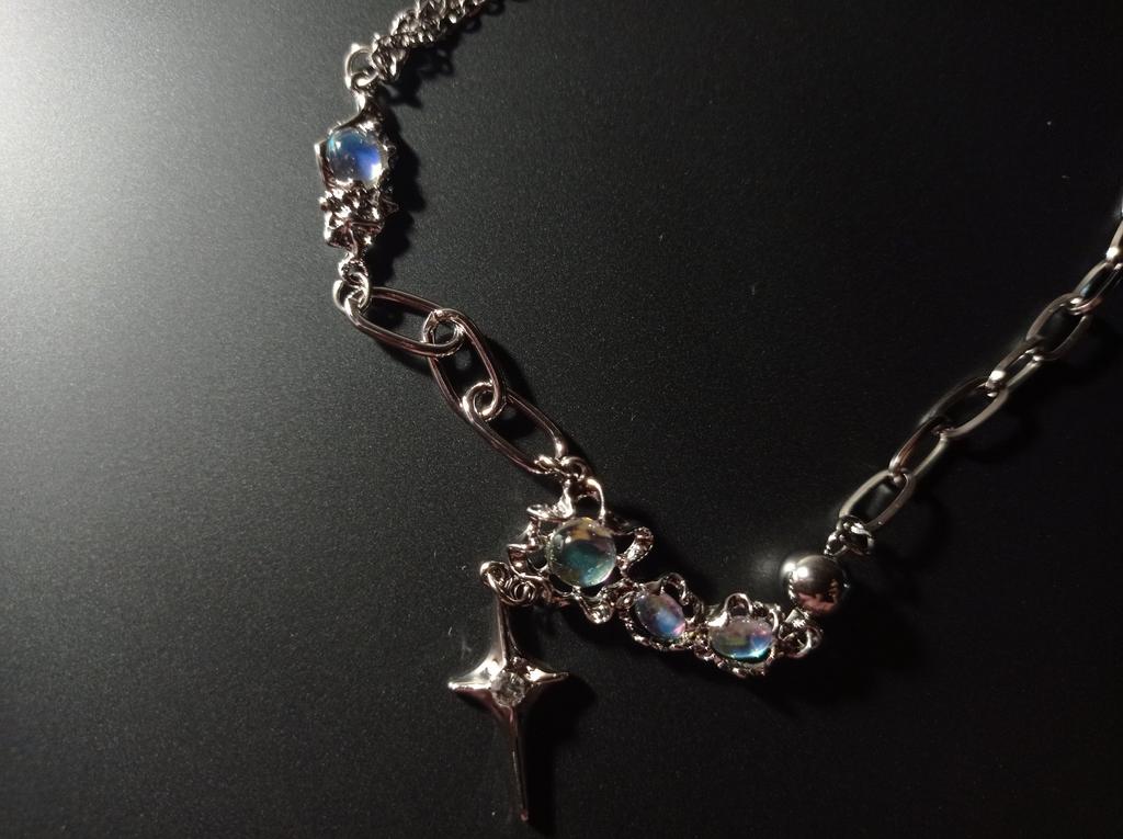 Кулон с хрусталем и опалом, ожерелье из жидкого металла для женщин, цепочка на ключицы, геометрическое нерегулярное винтажное колье Y2K, ювелирные аксессуары — купить товар онлайн с бесплатной доставкой по всему миру!