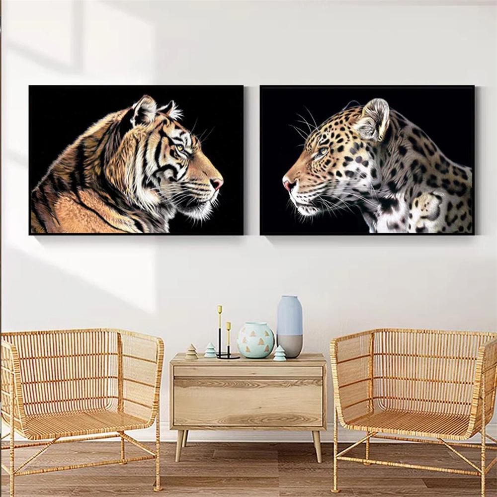 Тигр Леопард Голова Льва Животные Холст Стена Черно-белое Искусство В Темноте Поп Прохладное Искусство Современная Живопись Домашние Картины Украшения Плакаты Принты