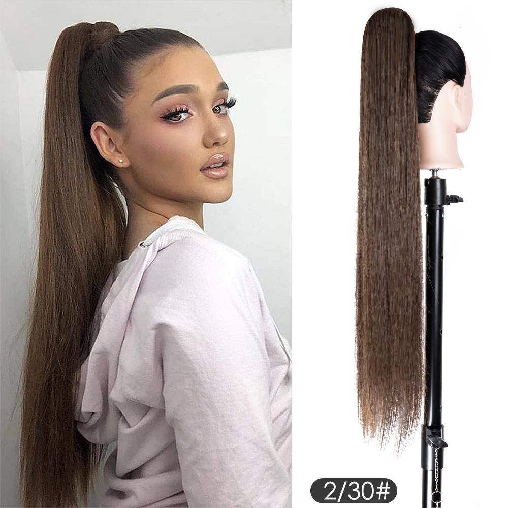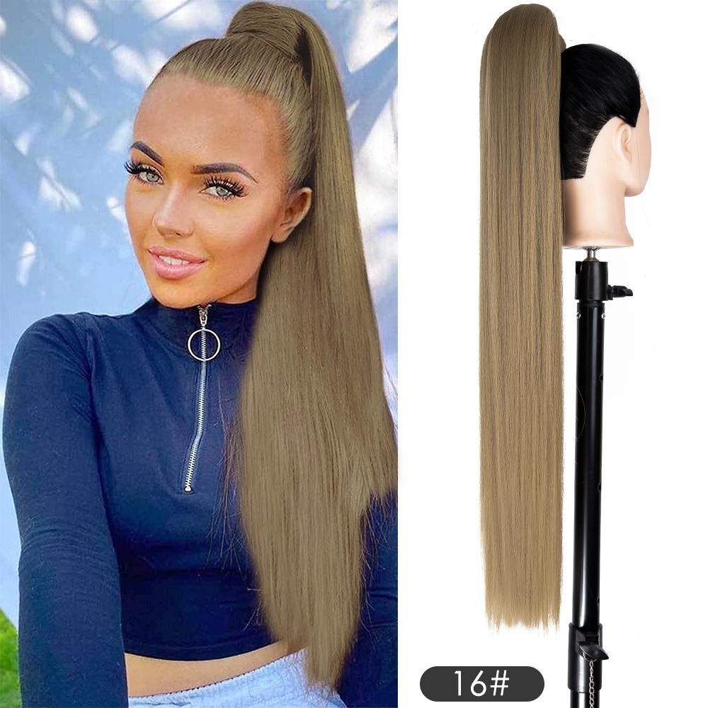 Прямой хвост с накладными волосами, омбре, блондинка, наращивание волос с конским хвостом, 85 см, синтетический термостойкий шиньон из конского хвоста