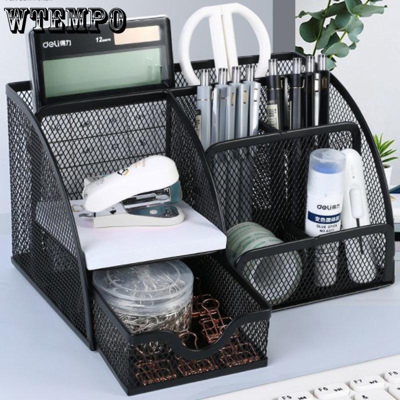 Пять цветов металлическая сетка настольный органайзер коробка настольный офисный органайзер держатель для хранения настольный карандаш ручка разное бейдж коробка канцелярские принадлежности