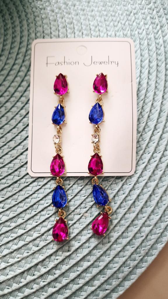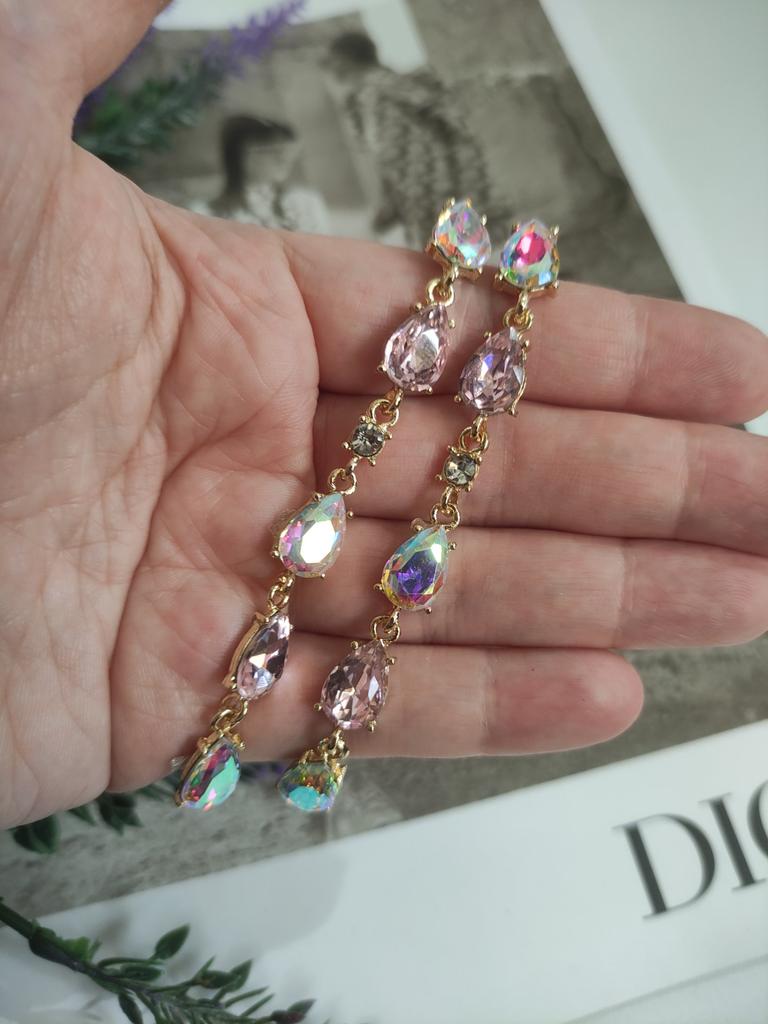 "Шика блеска дай!" Красивые серьги-цепочки с яркими стеклышками. Хорошее качество. Нормальные по весу, не слишком оттягивают мочку уха 👌 Застегиваются как серьги-гвоздики (есть специальные заглушки, удобные в носке).