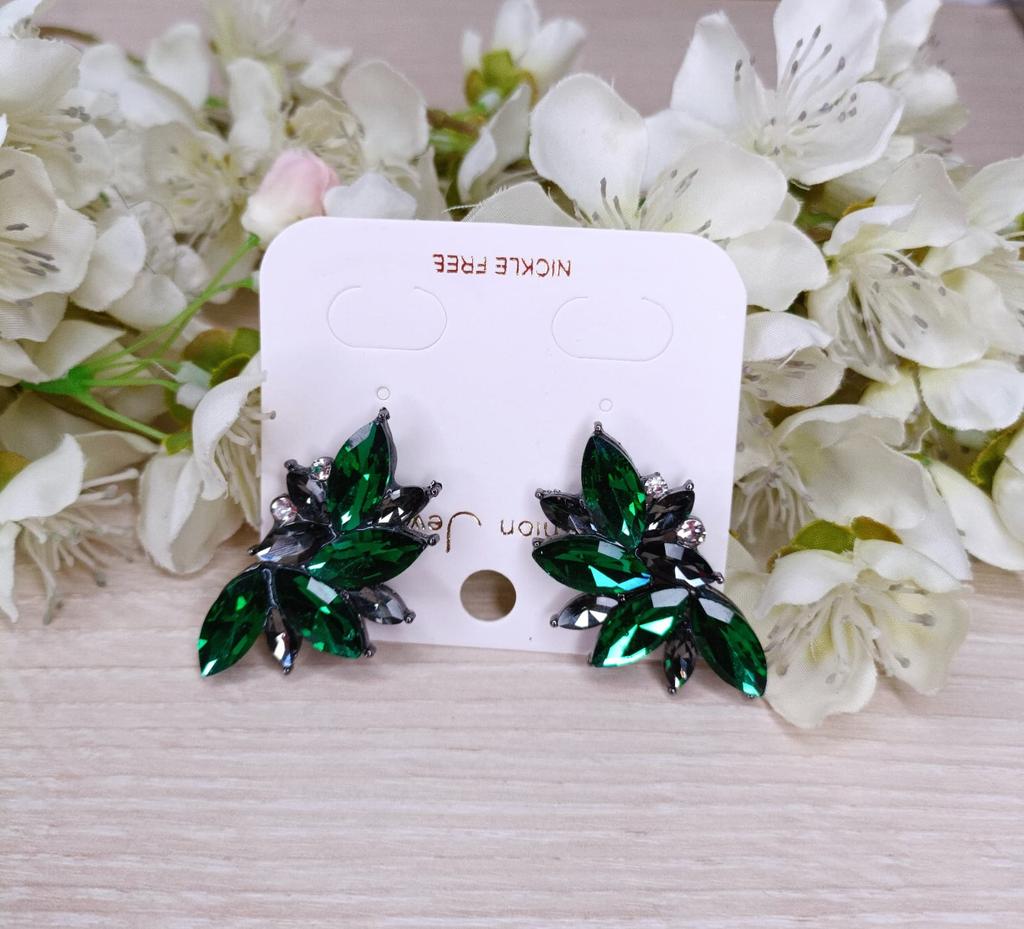 Красивые серьги, подойдут хорошо под вечернее платье. Но стоит учитывать что они не легкие, только тем кто привык носить тяжелые серьги они понравятся. Камни изумрудного цвета, сверкают красиво при попадании света. Брака нет, я осталась довольна. Но думаю застежки нужно поплотнее, от веса они слетают.