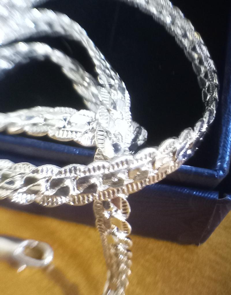 Цепочку получили,Упаковано все хорошо.Пришла в подарочной коробочке .Цепочка очень красивая,переливается , соответствует описанию 55 см, и 6 мм , 925 проба .Заказом довольна.Спасибо Joom . Рекомендую.