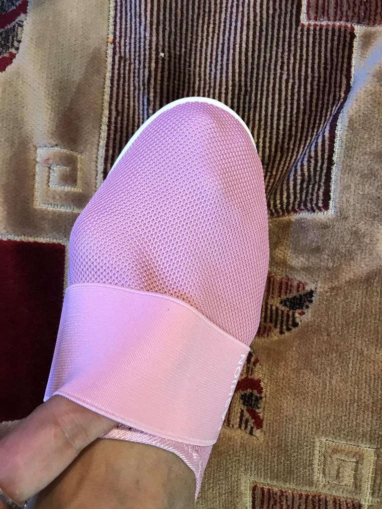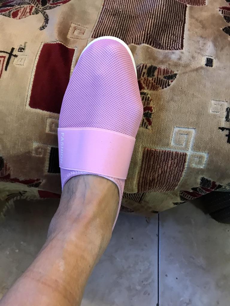 Цвет, конечно, отличается от фото на картинке. В натуре больше- розовый цвет. Получив посылку на почте, испугалась маленькому размеру доставочного пакета, т.к. заказала 43 размер.. Всё нормально- на пакете внутри бирка 43. Они легкие, сами - верх ткань, сверху широкая резинка. Хорошая идея, фиксирует объём ноги. Смущает на заднике бортик, но это если шлёпки впритык, то будет примят.. Но ничего…