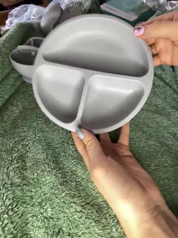 Доставка меньше месяца! Плотный силикон! Легко мыть! Присоски на столик прилипают,но в меру! Сбросить тарелку ребенок может ,но надо постараться!