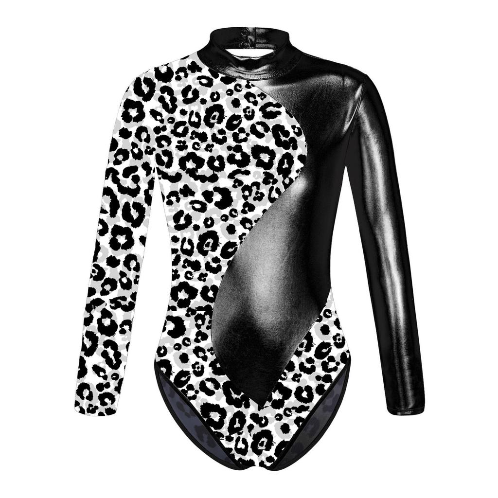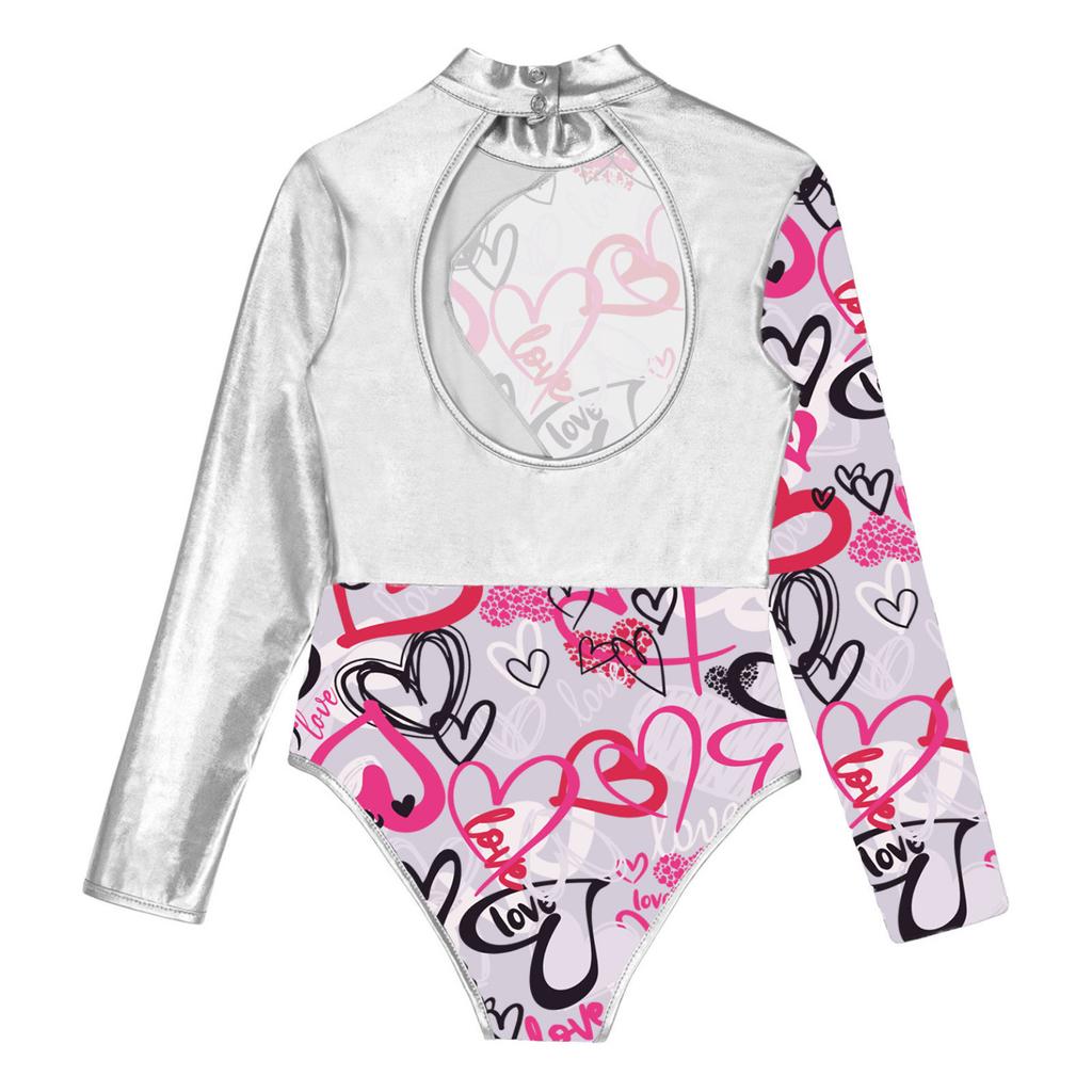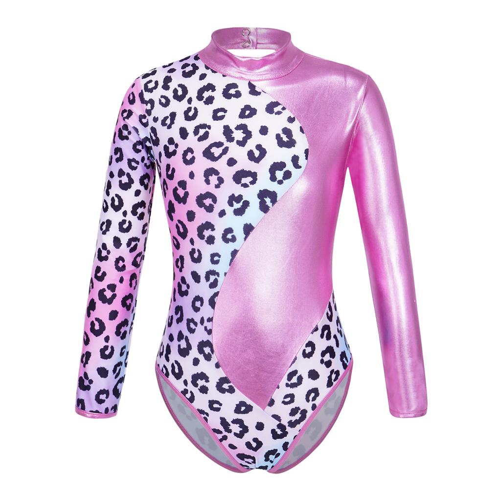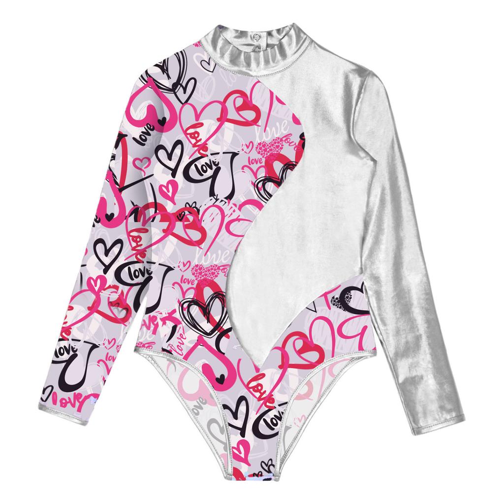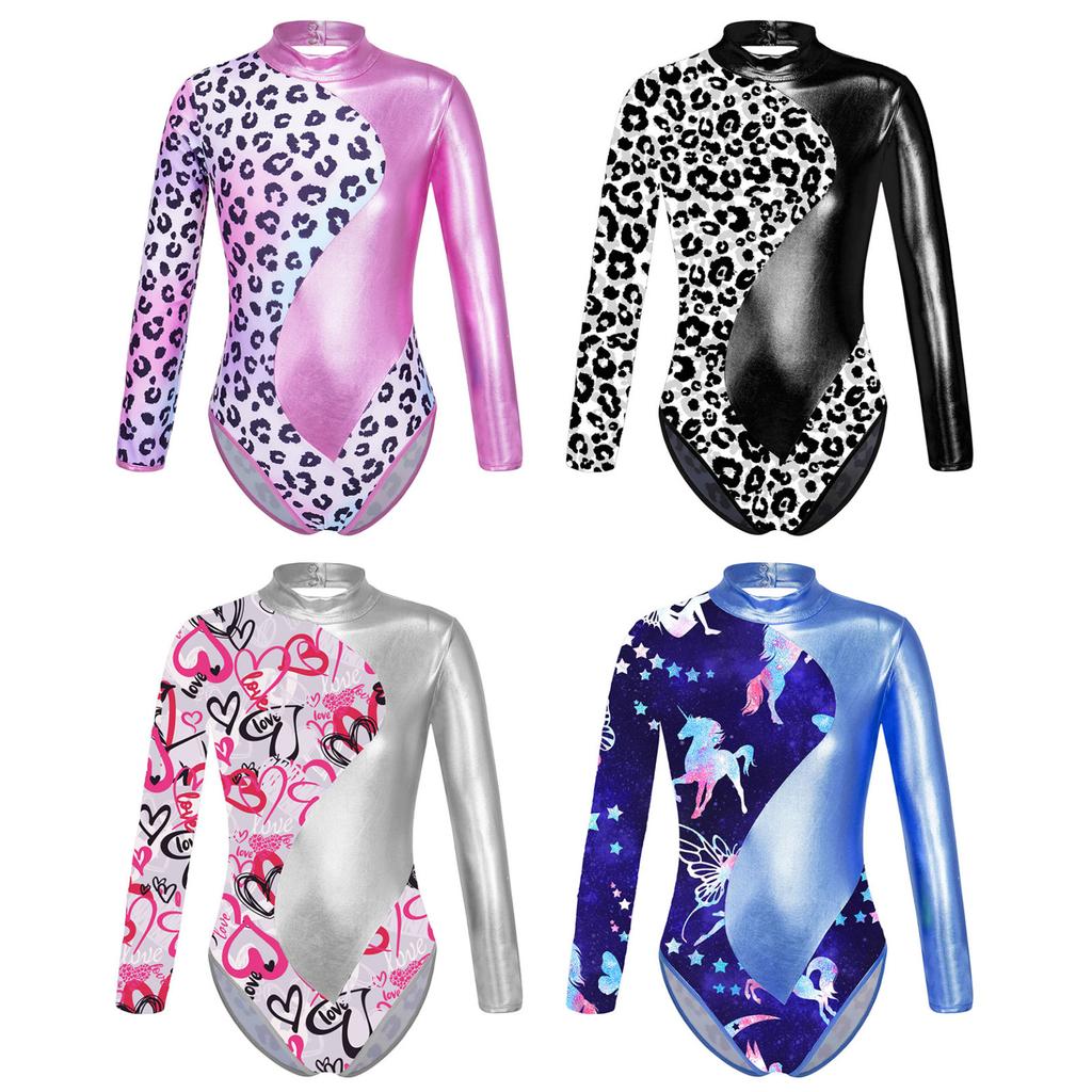 Детский гимнастический трико для балета и танцев для девочек, боди с длинными рукавами и принтом и шорты для катания на коньках, спортивные купальники для выступлений на сцене
