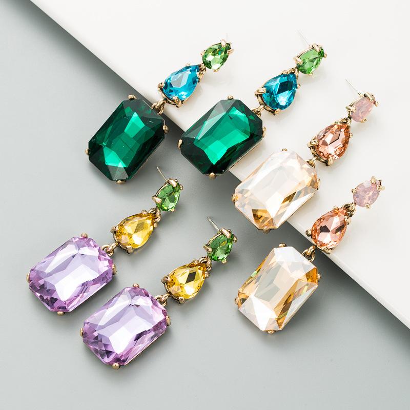Женские серьги-капли с цветными кристаллами, простые универсальные серьги с большими стразами и геометрическим узором — купить товар онлайн с бесплатной доставкой по всему миру!