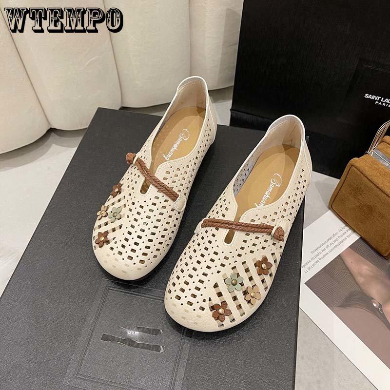 Нескользящие вентилируемые женские сандалии на плоской подошве в стиле ретро, в национальном стиле, обувь с круглым носком, обувь из мягкой кожи, летняя обувь