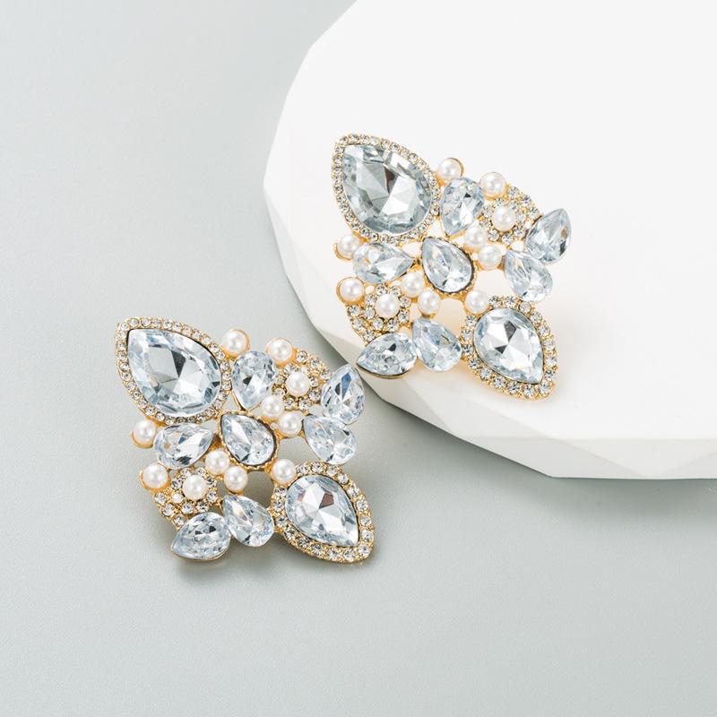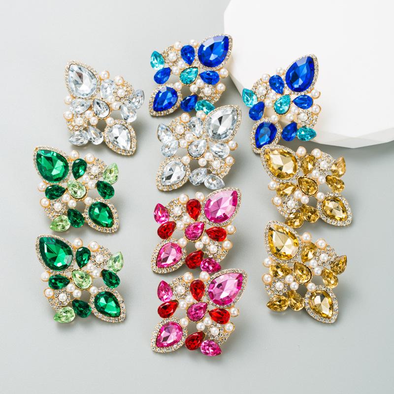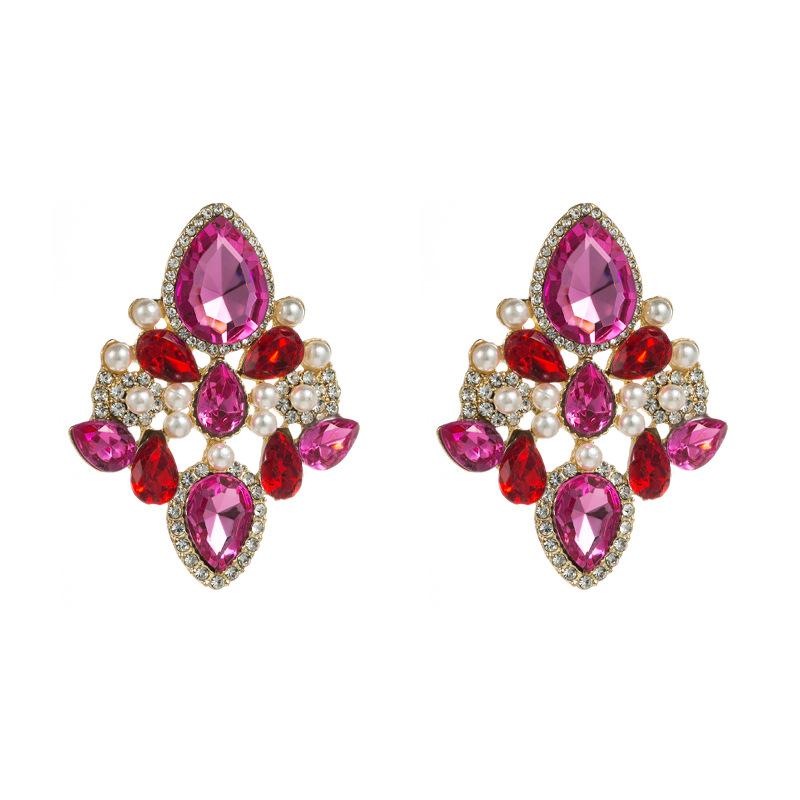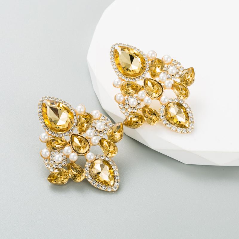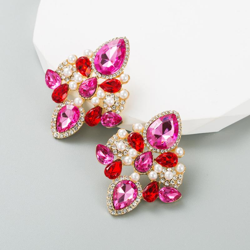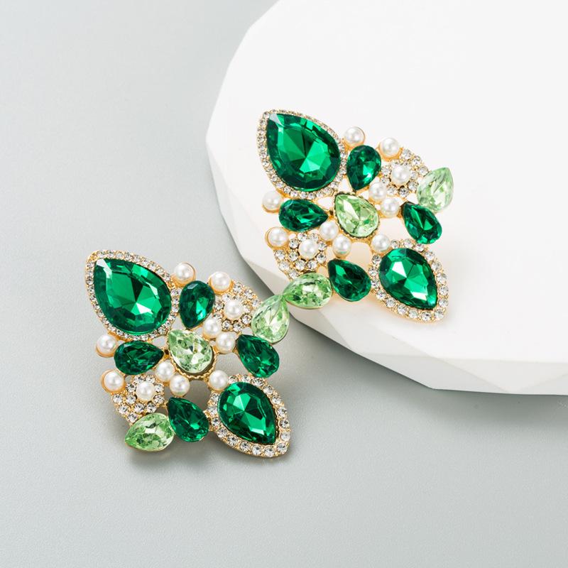 Женские серьги-гвоздики из сплава, инкрустированные цветными кристаллами и геометрическим рисунком, креативные темпераментные серьги высокого качества