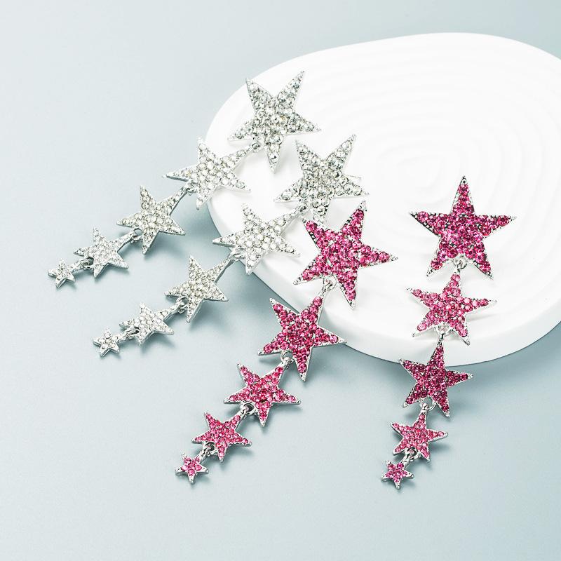 Женские серьги-капли со звездами, инкрустированные цветными кристаллами и геометрическим узором, креативные темпераментные серьги высокого качества