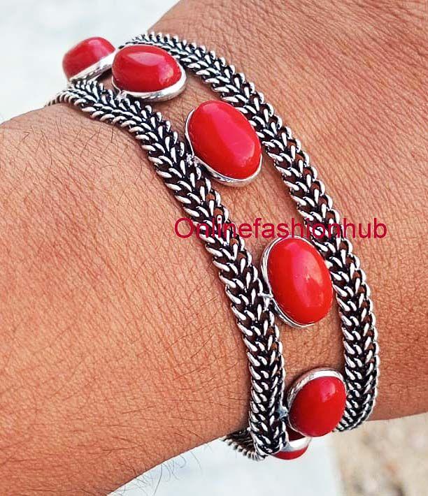Браслет-цепочка из окисленного серебра 925 пробы с красным ониксом CBb-b120
