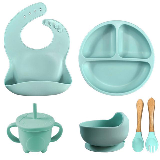 6 шт. детские тарелки для кормления детей, мягкая силиконовая миска, тарелка, чашка, нагрудники, ложка, вилка, набор, нескользящая мультяшная посуда для детей, не содержит BPA