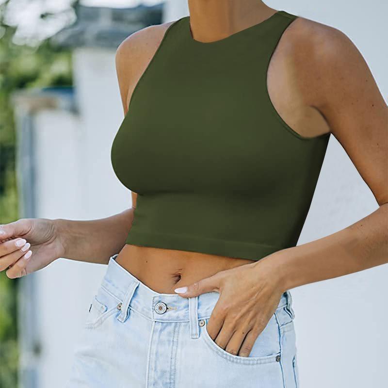 2. Характеристики: Круглая горловина без рукавов, обтягивающая, открытый пупок, женский жилет в елочку, подходит для любого возраста.