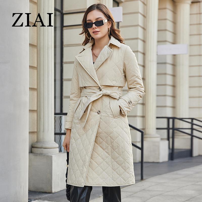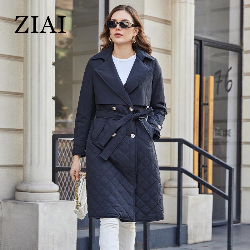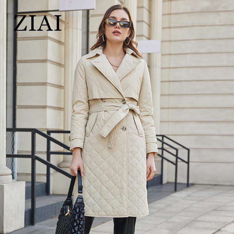 ZIAI 2023 НОВАЯ женская весенняя куртка с длинным поясом, классический двубортный плащ с большими лацканами, тонкие хлопковые парки ZM-20297