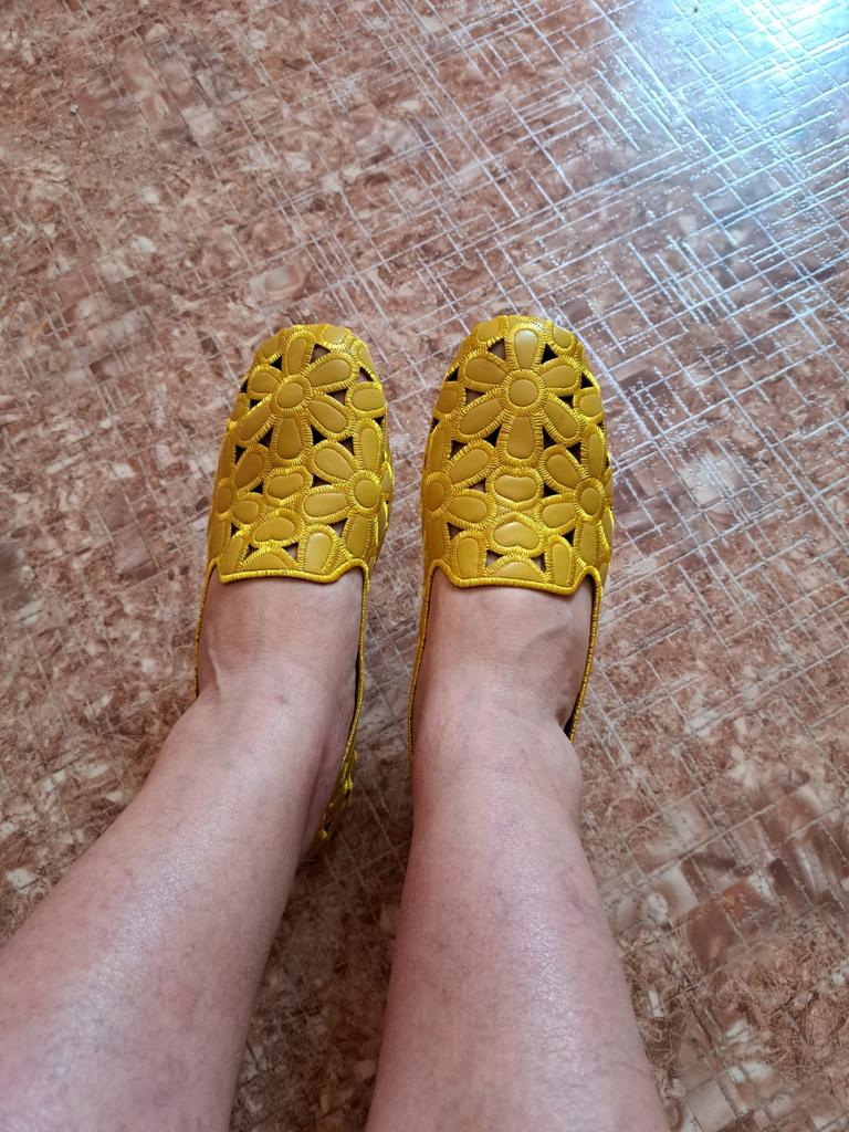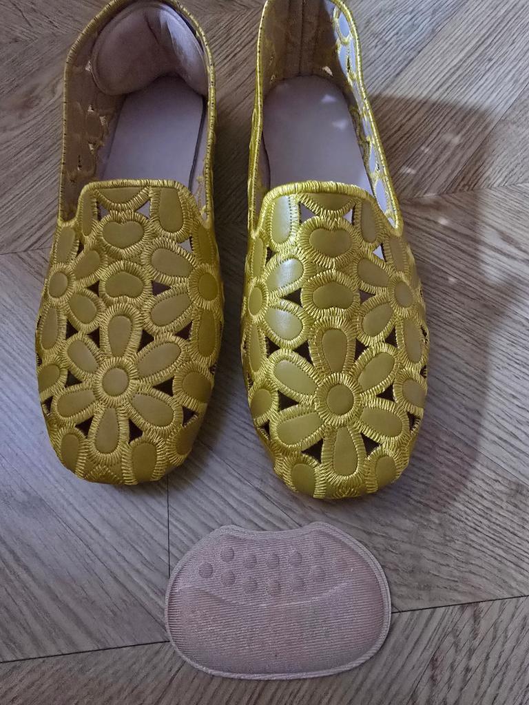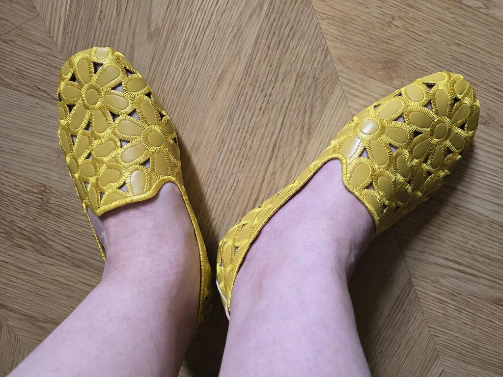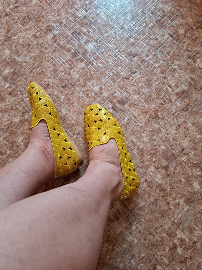 Обувь здесь беру по меркам, и почти всегда угадываю. Мне так нужны были жёлтые кеды или туфли! Туфли попались раньше))) По цене и качество. Посмотрю, как будут носиться. Нога не полная, но и не узкая. Скорей всего, положу стельку с подъёмом для более комфортной опоры стопы. Обычный мой размер 39, здесь беру 40.