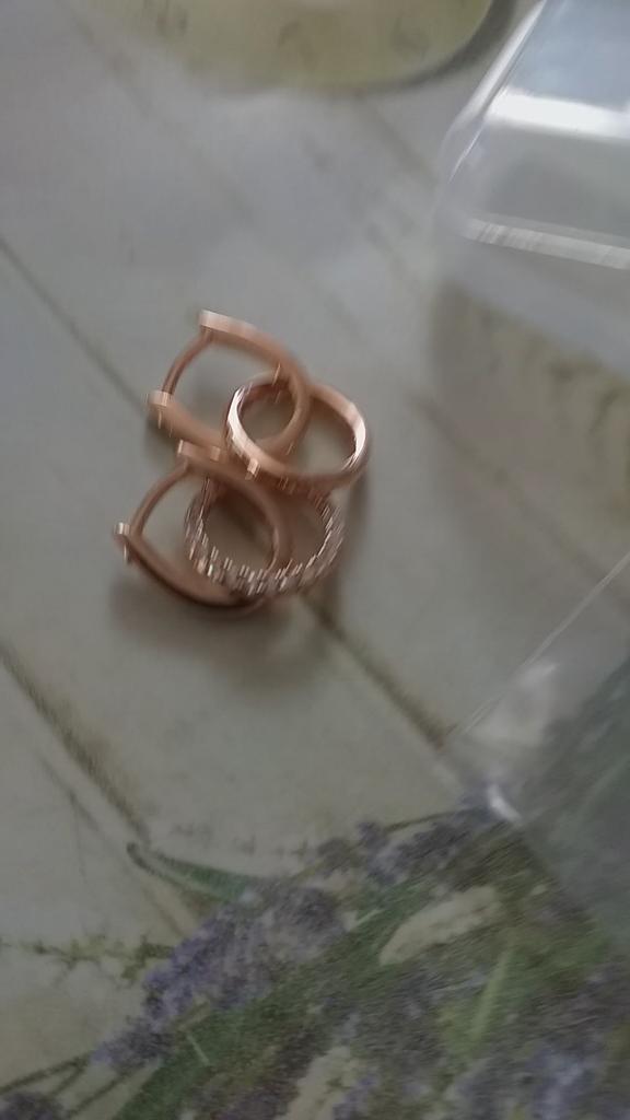 Очень красивые серёжки, пришли в пакетике и контейнере. Можно нижнее колечко переворачивать на любую сторону. Коротковатый хвостик у защёлки, не совсем удобно открывать. Спасибо Джуму и продавцу