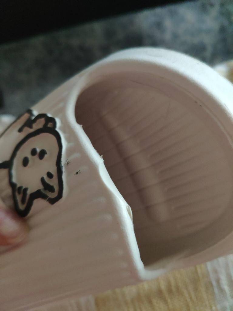 Тапки это мое разочарование. Не стоят они своих денег. Выполнены вообще не качественно, посмотрите на эти неровные края - они везде. Котик из-за которого я их выбрала как будто рисовался фломастером трехлетним ребенком, причем ещё и вокруг рисунка все испачкано черным. Размер вообще не соответствует, взяла на размер больше, так пальчик хоть немного да все равно торчит. Не советую этот товар.