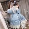 Японское готическое платье Лолиты, женское кавайное кружевное синее платье с бантом и медведем, платье принцессы с длинными рукавами, костюм на Хэллоуин, подарок для девочек
