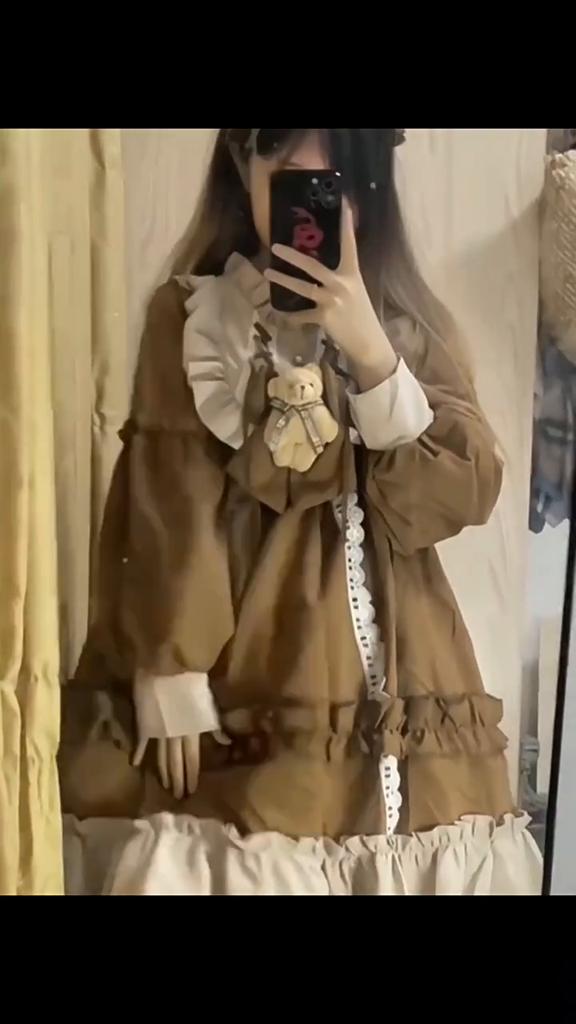 Японское готическое платье Лолиты, женское кавайное кружевное синее платье с бантом и медведем, платье принцессы с длинными рукавами, костюм на Хэллоуин, подарок для девочек — купить товар онлайн с бесплатной доставкой по всему миру!