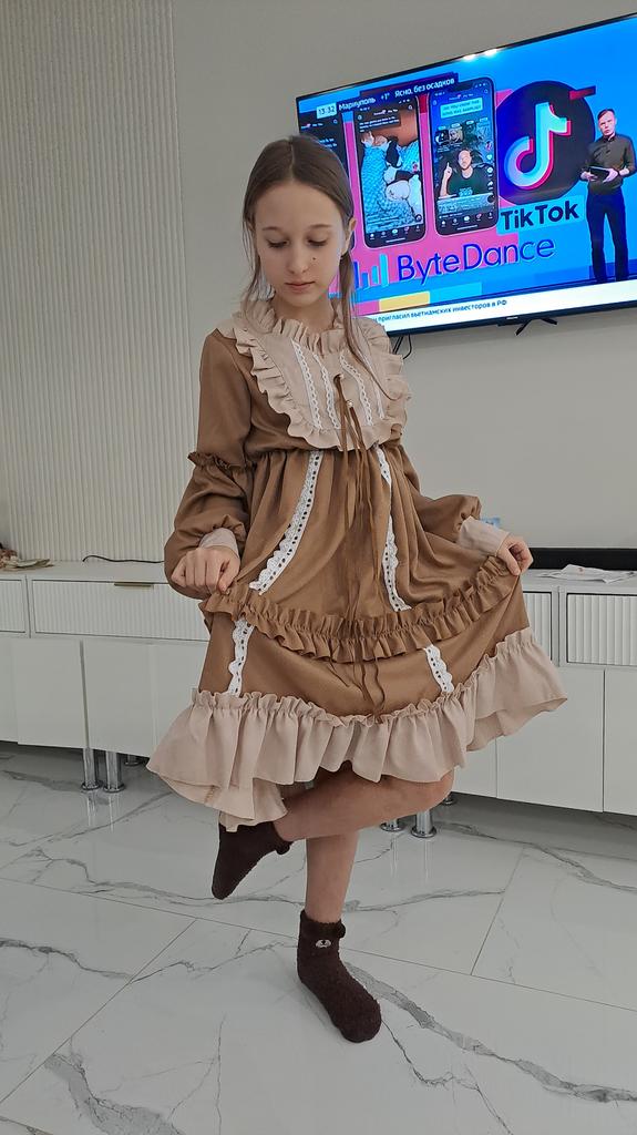 Всем доброго времени! Получили платье дочка от него в восторге Мне кажется оно его готова носить везде😁 Рост дочери 150см Платье сшито качественно аккуратно.