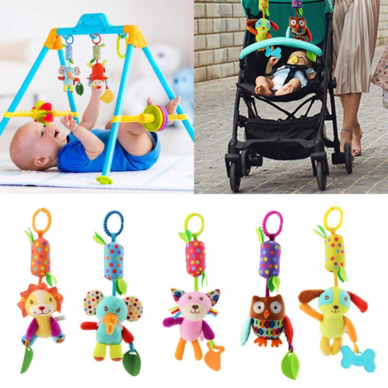 Мягкая подвесная погремушка с хрустящей игрушкой, кольцо с изображением животных, плюшевая коляска, детская кроватка, автомобиль, игрушка-колокольчик, прорезыватель для зубов