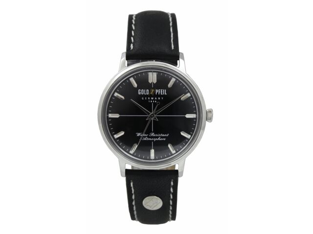 Золотые наручные часы Pfeil G21010Sb с 3 иглами, классические аналоговые мужские, черная кожа, НОВИНКА