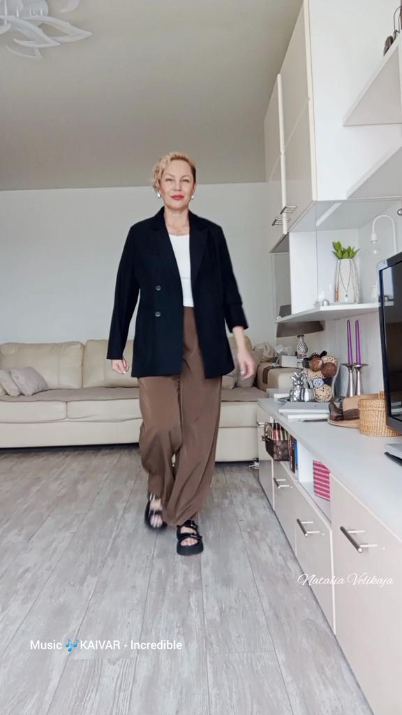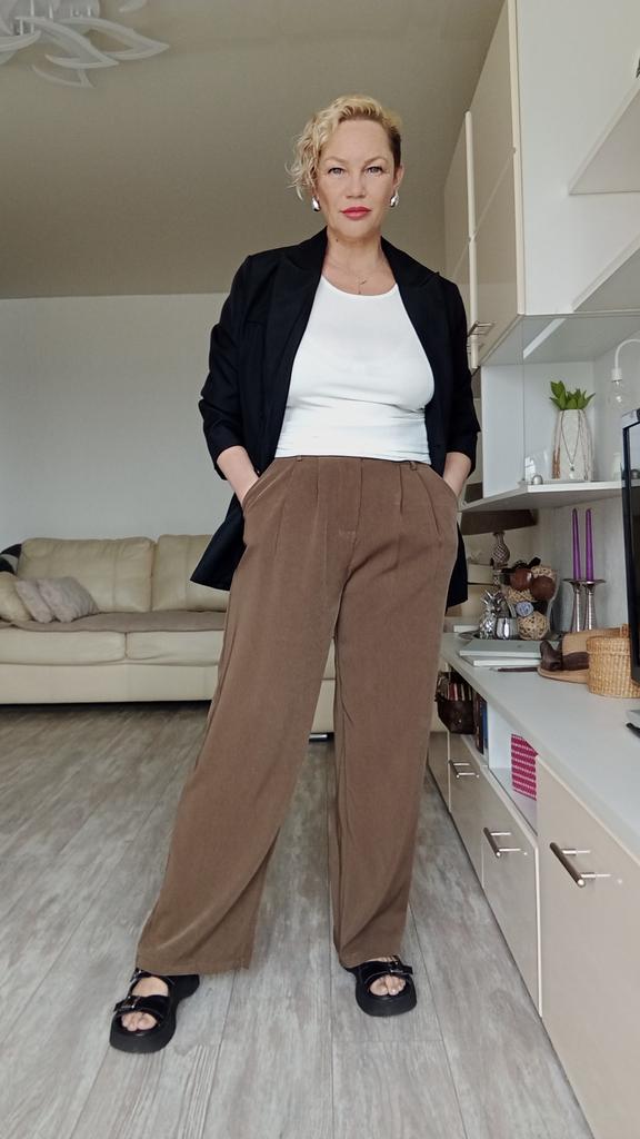 Наконец-то я нашла брюки качество которое давно искала. На любое время года. Ткань тяжёлая, струящаяся. На фигуре сидят идеально. Скрывает все недостатки фигуры. Стройнят фигуру. Мои объёмы Объём талии 105 см, бёдра 116 см. Рост 158 см. Замеры брюк: Талия 96-105 см, Бёдра 122 см Длина брюк от пояса 106 см. Пока их ждала маленько прибавила. На поясе две пуговицы. Сначала застёгивала на крайнюю пуговицу. Подрастроилась и заказала ещё одни на размер больше. Жду когда прийдут. И случилась радость у меня. Когда одела брюки для фотосессии на талии застегнула все пуговицы. Схуднула. Теперь у меня будет двое брюк. Обожаю эти брюки. Рекомендую покупку.