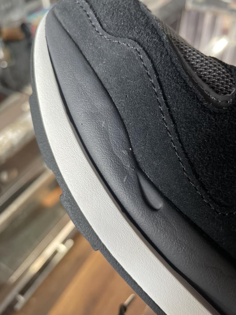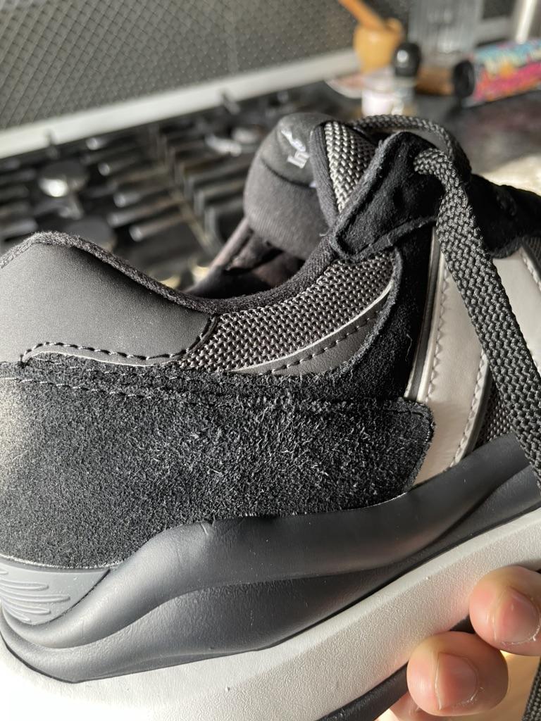 Дефект на подошве небольшой это первое,нитки торчат ,немного клей виден на некоторых местах,на одном кроссовке замша потёртая .Очень большие сомнения о оригинальности этих кроссовок за своё качество.В подарок были носки.но кроссовки меня расстроили