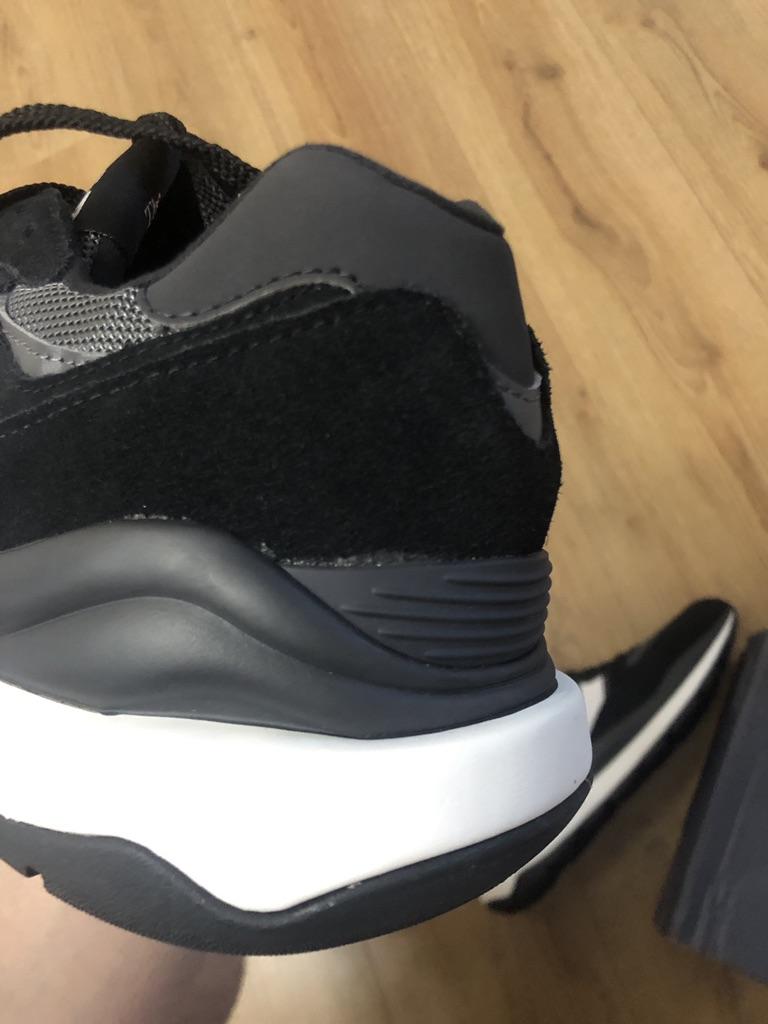 Наглая подделка, не покупайте! На фото подошва заходит на пятку и на носок, прислали кроссовки совершенно другой модели см. фото. Размер не соответствует. У меня размер Англия 11,5; США 12 по евро это 44,5-45. Заказывал 300 корейский должен соответствовать 46 евро. В итоге дико жмут, по факту это даже не 45.