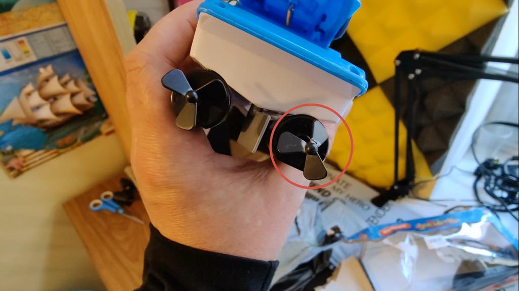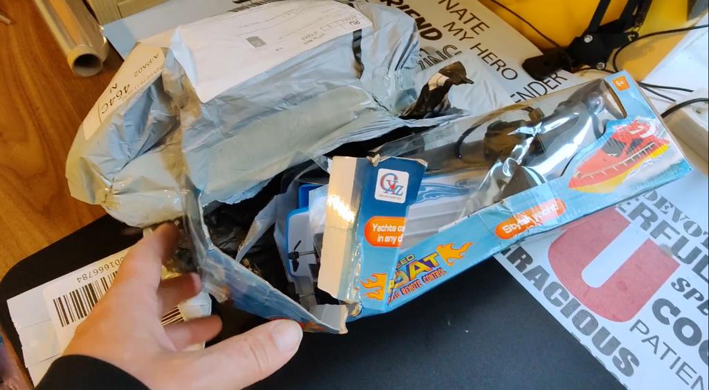 Пришел в раздолбанной упаковке, благо там особо нечему ломаться и треснула только лопасть винта, а в коробке было два запасных. К самому товару претензий нет, разве что днище обещали желтое, а пришло белое. Моторчик не особо мощный, если в водоеме будут водоросли, они намотаются на винт и будет остановка.