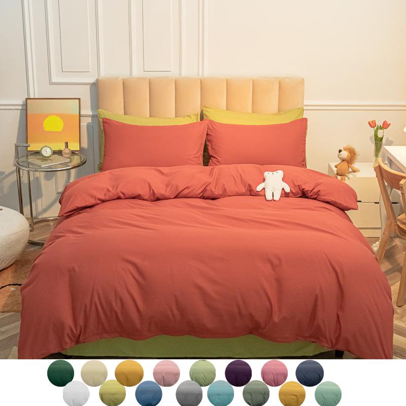 Однотонные наборы из четырех предметов из мытого хлопка, утолщенные простыни с начесом, три комплекта