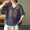 Топ женский большого размера, летний винтажный хлопковый свободный пуловер с литературной вышивкой, рубашка с короткими рукавами