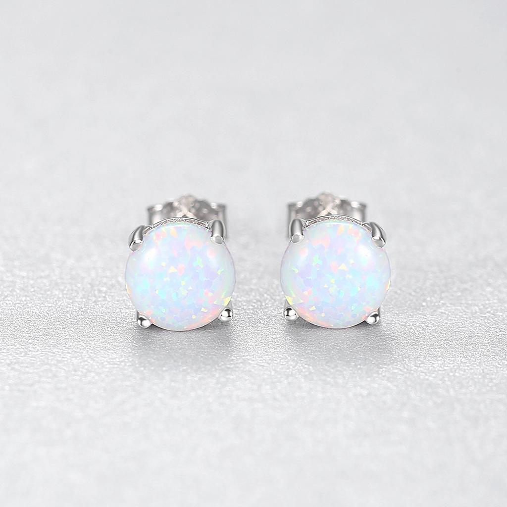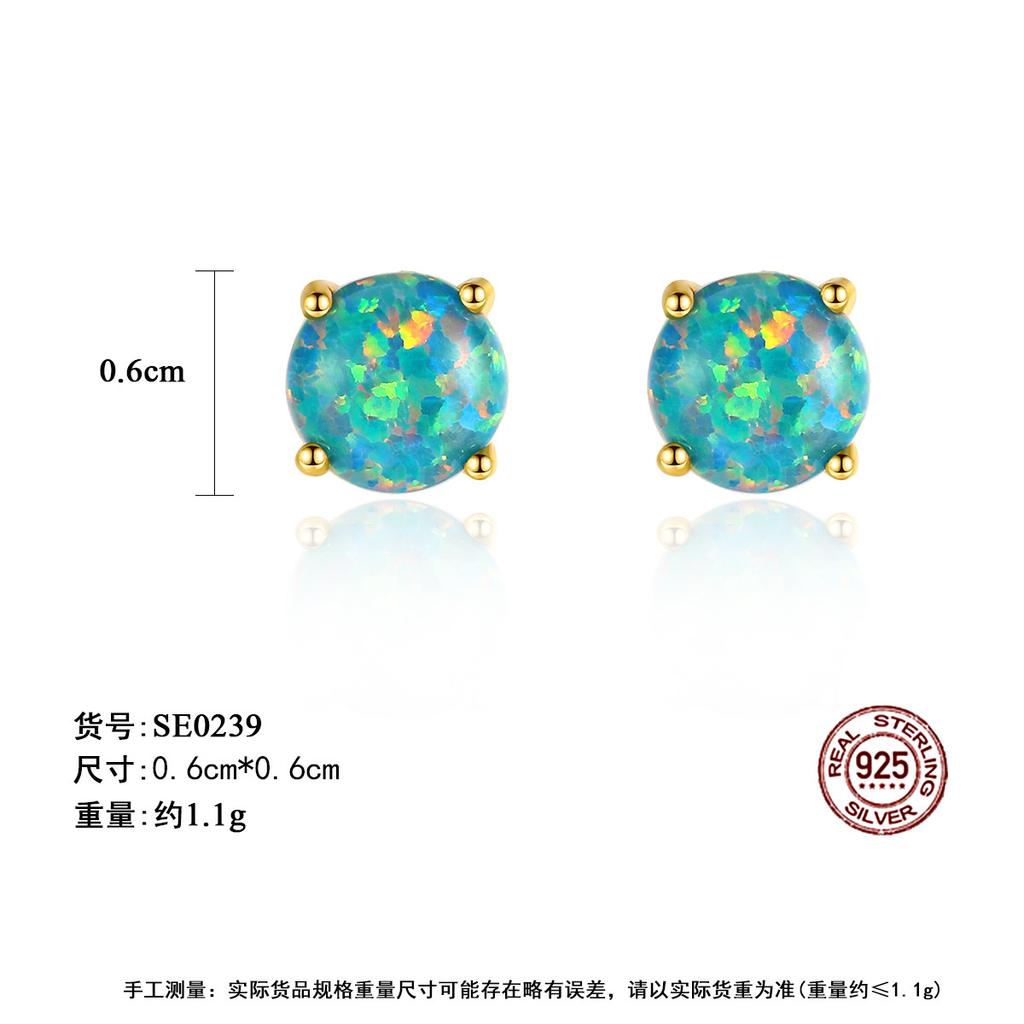 S925 Серебряные серьги Женские модные серьги с четырьмя когтями круглого цвета с опалом