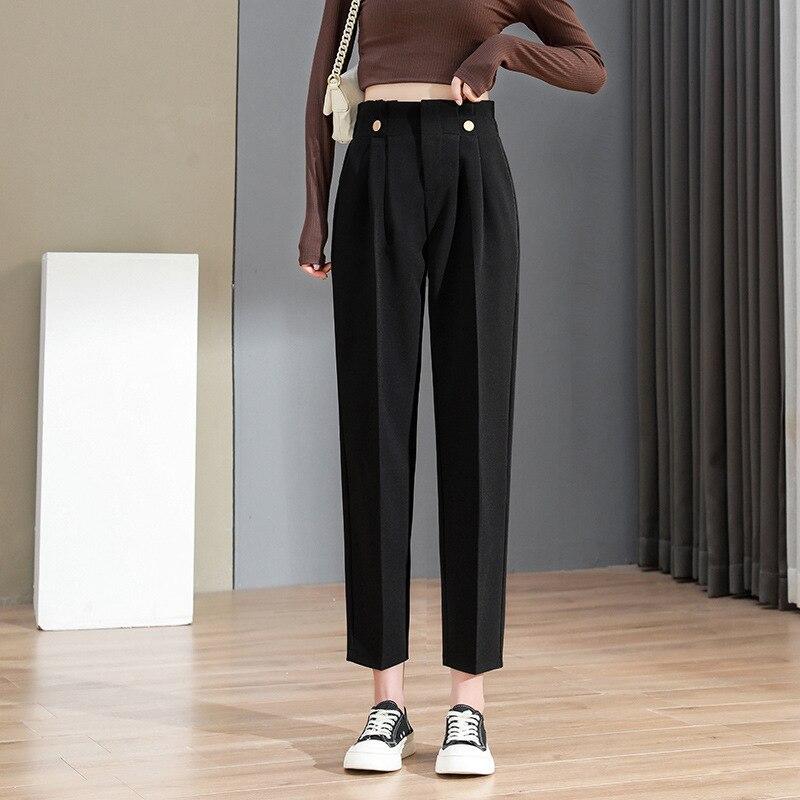 Весенне-осенние корейские свободные повседневные брюки для костюма, женские прямые брюки с высокой талией, элегантные простые однотонные брюки для путешествий — купить товар онлайн с бесплатной доставкой по всему миру!