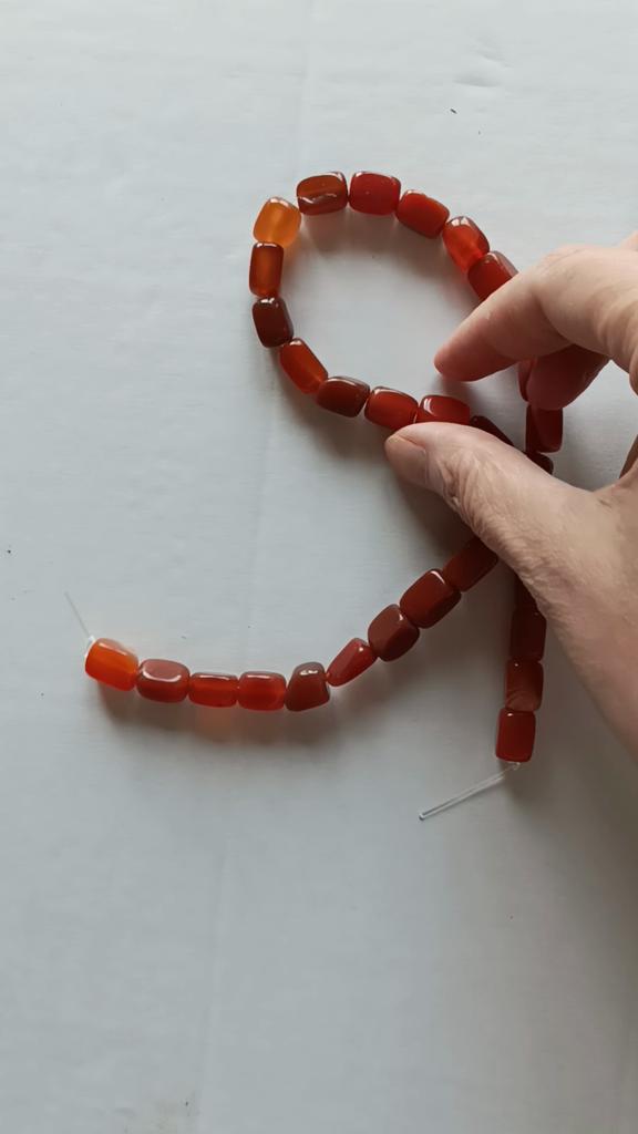Не такие яркие, как на фото. 33 бусины, не округлые, квадратные. Три с браком, но назад, к застёжке пойдут. Длина нити 38,8 см. Камни просто притягивают, хочется их гладить, перебирать, смотреть при разном освещении. Красивые. Я делала бусы из кораллов, ларимар, опала. Эти пока самые эффектные. Дорого, но советую.