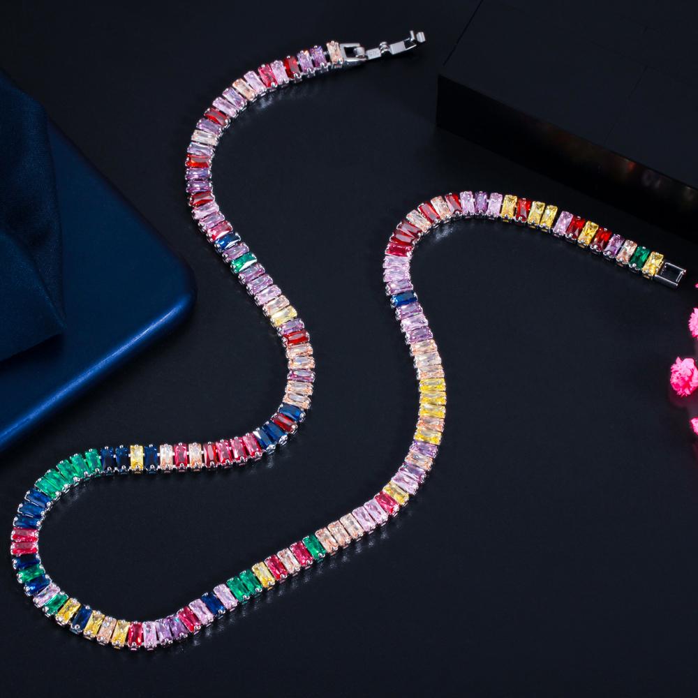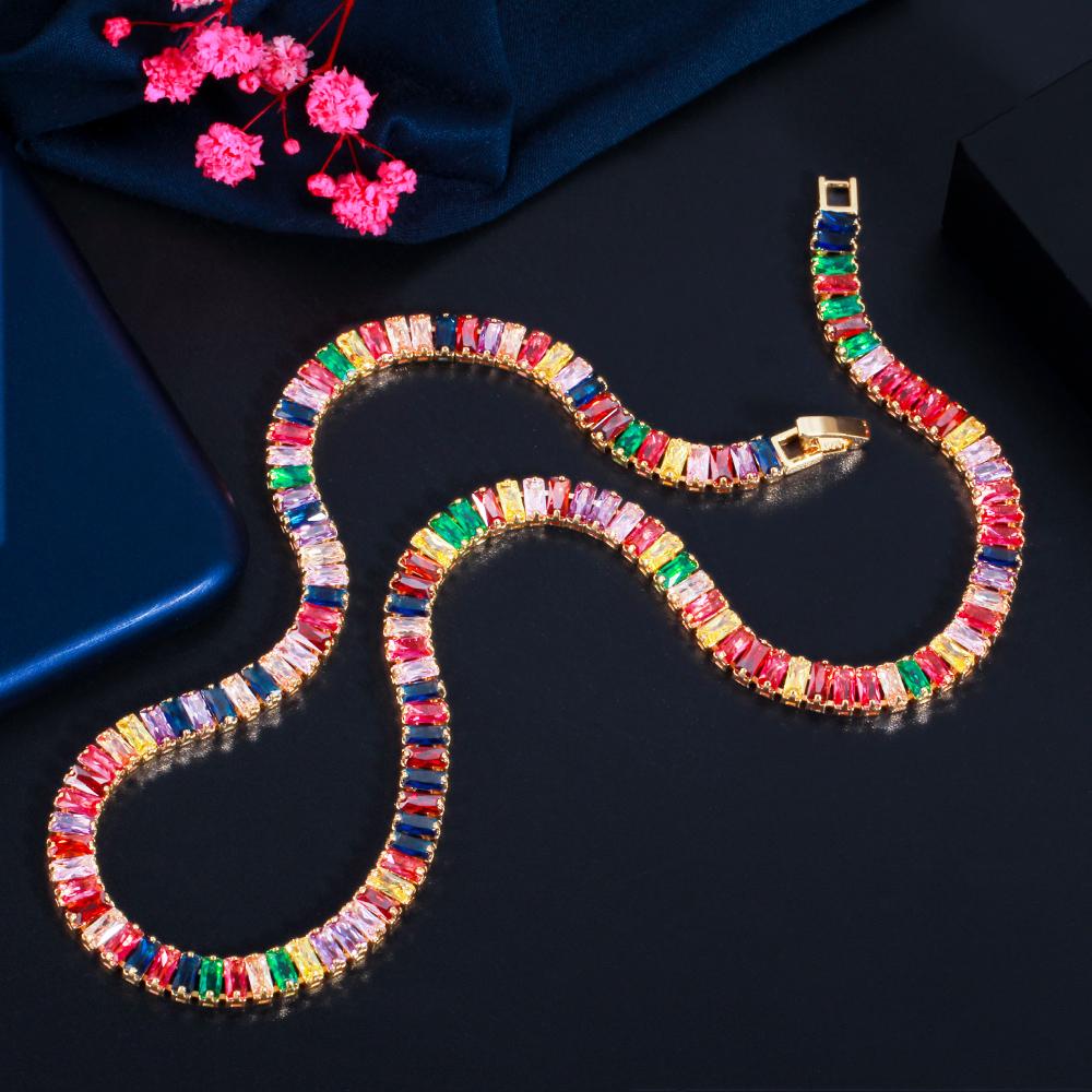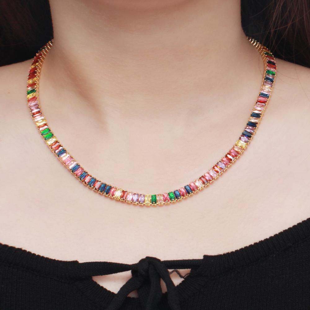 WWJ шикарное разноцветное радужное багет с кубическим цирконием, круглое ожерелье для женщин, ювелирные изделия в стиле бохо для помолвки