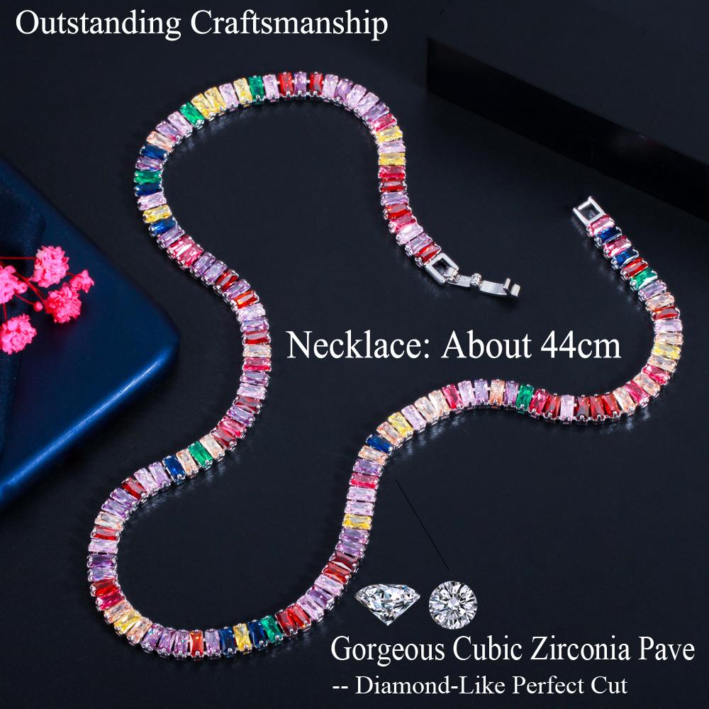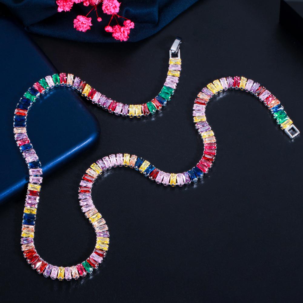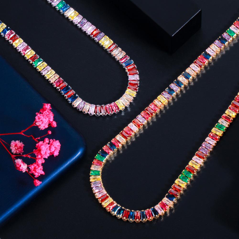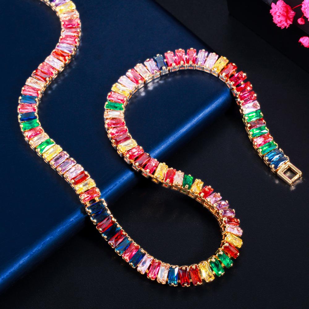 WWJ шикарное разноцветное радужное багет с кубическим цирконием, круглое ожерелье для женщин, ювелирные изделия в стиле бохо для помолвки