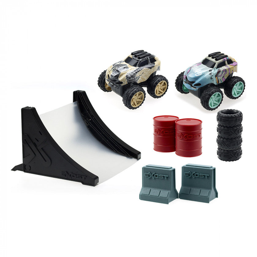 Создайте свой собственный раллийный парк с парой ярких гоночных автомобилей с большими колесами в игровом наборе Silverlit Exost Jump Mega.. Упаковка превращается в рампу для выполнения трюков, а дополнительные аксессуары в виде препятствий и регулируемой рампы для спусков и подъемов придают гонке разнообразия.. Чем больше ящиков с автомобилями вы соберете, тем больше и интереснее вы сможете построить гоночную трассу, комбинируя ее с шинами, бочками и пандусами.