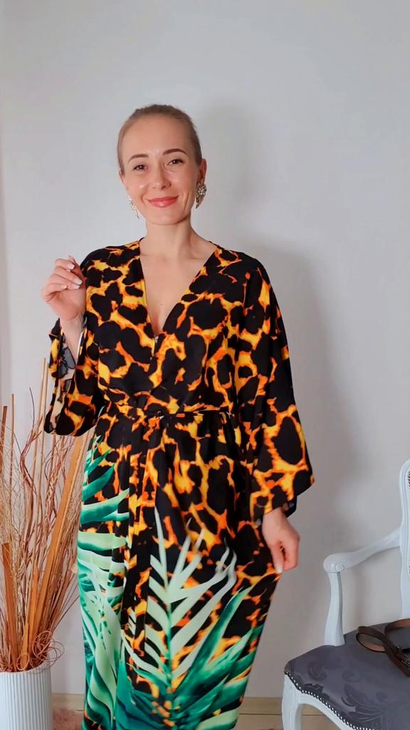 🏝 ШИКАРНОЕ ПЛЯЖНОЕ ПЛАТЬЕ ИЗ ХЛОПКА 🏝 📍Друзья, присоединяйтесь к моему Telegram каналу: 🔎 Ingajoom Чтобы не пропустить самые интересные обзоры, выгодные промокоды, лотерей и распаковки 😉 Все детали смотрите на видео 📽 💃Мои параметры 90-65-90см. Рост 156см. Халат сел идеально. Конечно же есть большой запас. 📐Замеры платья: Грудь/талия/бёдера 120 см, плечи 73 см, рукав 29 см, объем рукавов 60 см, длина по спинке 135 см. Идеальное качество! Материал: нежнейший хлопок, отлично гладится, не светит, оооочень приятный на теле! Очень яркий тропический принт с огненным леопардом 😍🙌 Детали: Широкий спущеный рукав, пояс со шлейками. Доставка за 2,5 недели в Германию. 🔖Я безумно довольна покупкой! Эта вещь обязательно предит со мной в отпуск 🏝💯😍 хотя такую вещь можно конечно же носить и дома как пеньюар 🙌 действительно очень комфортно и подойдёт для любой фигуры 😉 От меня ⭐️⭐️⭐️⭐️⭐️ Ваша Инга 😘